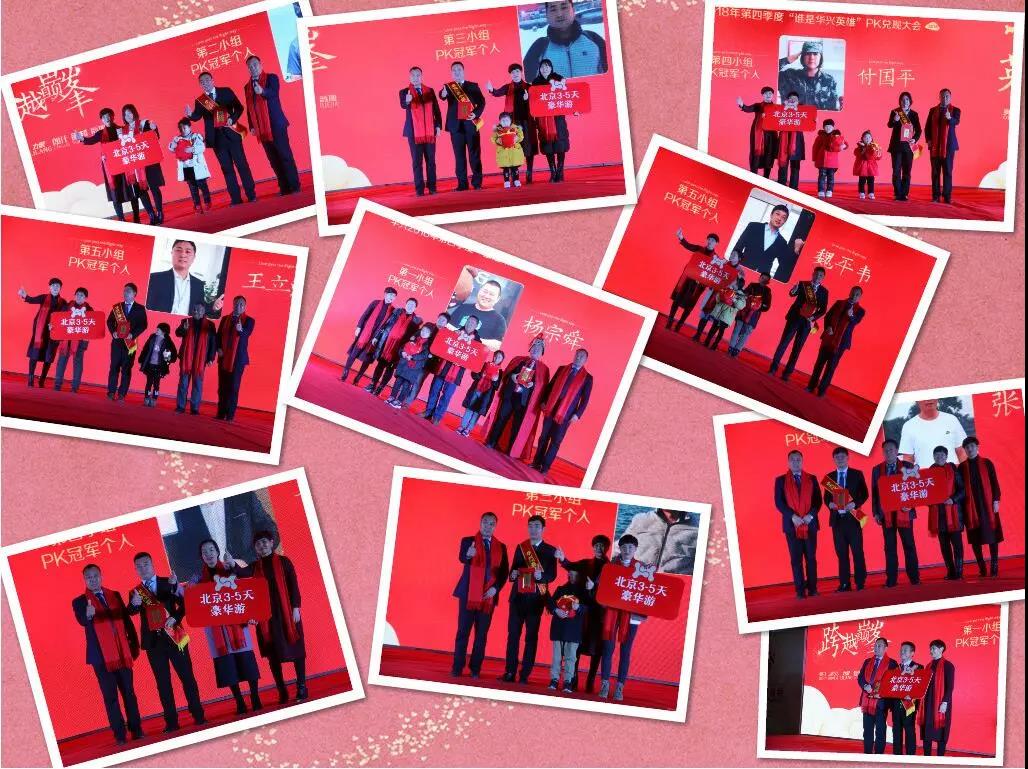 隨后,華興公司對2018年四季度PK賽各小組冠軍,小組冠軍個人及家屬、超額獎,研發(fā)創(chuàng)新獎,年度總冠軍團隊等獲獎團隊和個人一一兌現(xiàn)承諾,董事長冀葉軍親自為每個獲獎團隊和個人頒獎;同時小組冠軍個人及家屬還獲得公司提供的北京3-5日豪華游!
